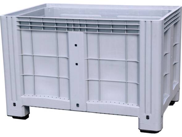 Промышленный контейнер увеличенного объёма с устойчивыми ножками для надёжного хранения и транспортировки различных грузов. Серый цвет обеспечивает практичный внешний вид и универсальность применения в производственных условиях.