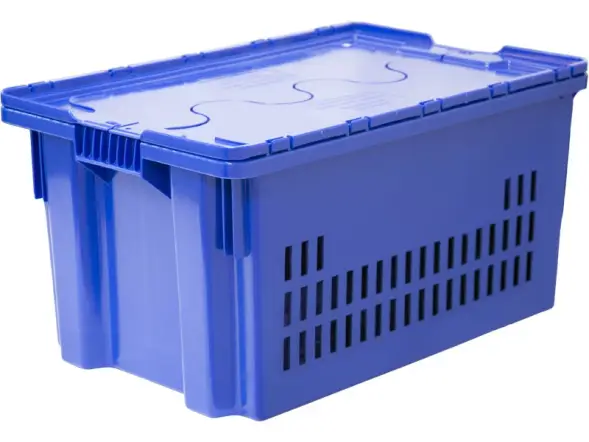 Ящик пластиковый перфорированный с крышкой, 600x400x315 мм, 52 л, синий [602-1 SP м]