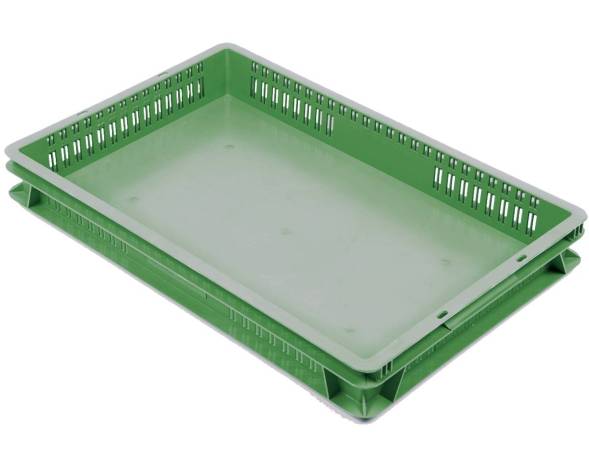 Ящик (лоток) пластиковый овощной с перфорированными стенками, 600х400х75 мм, зеленый [600400075-01]